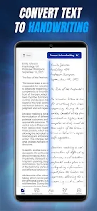 CursiveAI: 텍스트를 손글씨로 변환하는 다재다능한 Android 유틸리티로, 입력된 텍스트를 사실적인 손글씨 문서로 변환합니다. 90개 이상의 진짜 손글씨 스타일과 12개 이상의 언어를 지원하여 사용자는 노트, 편지 및 과제를 시각적으로 매력적인 페이지로 빠르게 변환할 수 있습니다. 이 프로그램은 문서 가져오기, 손으로 그린 표, 빠른 PDF 내보내기와 같은 기능을 제공하여 교육용에서 전문용에 이르기까지 다양한 응용 프로그램에 적합합니다.
